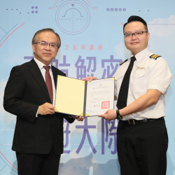 今年「國內航空器駕駛員訓練獎助金」共有華航錢武正、華信呂忠倫、星宇黃志瑋、台灣虎航何偉綸和詹博勛五位機師獲得獎助金,在全場航空迷的注視下,由航發會董事長陳彥伯手中接下證書,並可獲得50萬元獎助金。他也鼓勵年輕學子:「想學飛!努力不懈、勇敢去追!」。